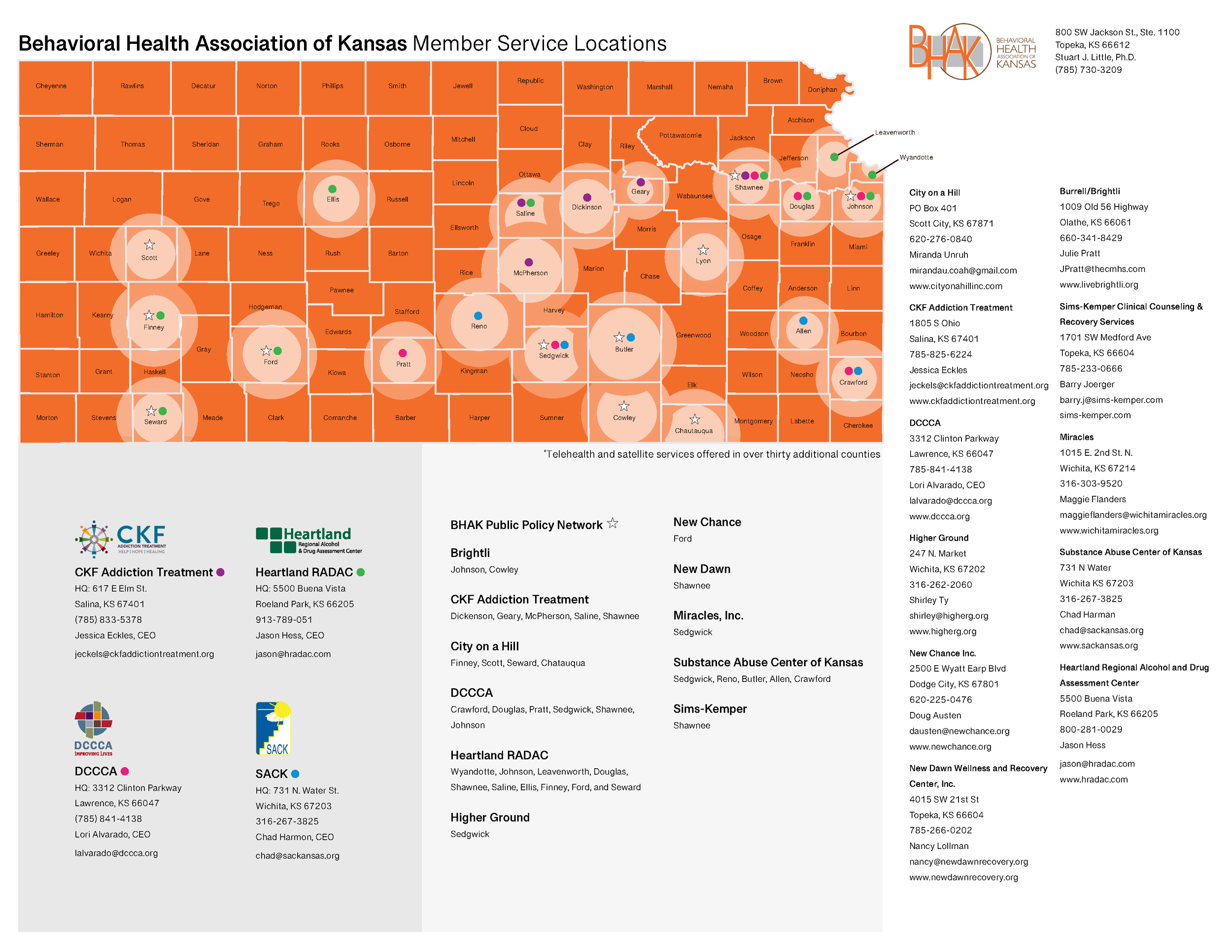 The Behavioral Health Association of Kansas seeks to increase capacity, expand access and provide more options for behavioral health consumers in the state of Kansas.
